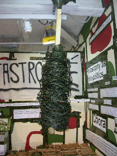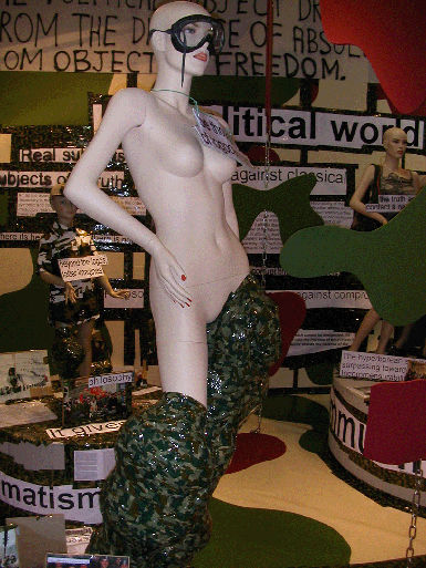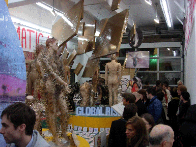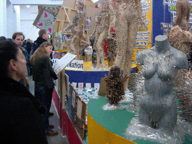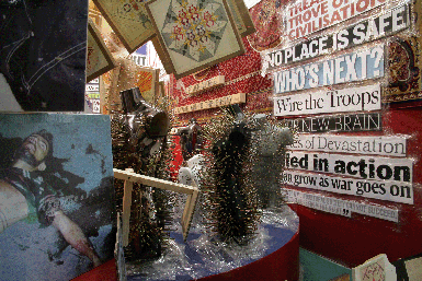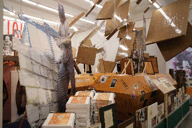 | Above photographs of Thomas Hirschhorn's Superficial Engagement at the Barbara Gladstone Gallery, New York, courtesy of the Barbara Gladstone Gallery. Photographs below taken by Aftershock of Thomas Hirschhorn's Utopia, Utopia=One World, One War, One Army, One Dress at the CCA Wattis Institute for Contemporary Arts, San Francisco. All imagery of artwork courtesy of the artist. | |||