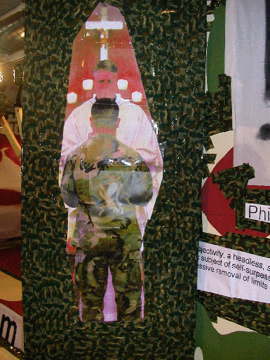 After Shock and Awe, or, War Porn, the Plight of Images and the Pain of Others: Considering Two Recent Exhibitions by Thomas Hirschhorn William Kaizen The term "war porn" has evolved in the past several years to describe images of extreme military violence that circulate online. A significant point of emergence in war porn's recognition came with the indictment of Chris Wilson, webmaster of the forum-based site nowthatsfuckedup.com. Wilson offered U.S. soldiers stationed in Iraq access to amateur-pornographic images in exchange for images of dead insurgents from Iraq and Afghanistan. Soldier would send in images of graphic, horrible violence—a reporter described one the following way: "you can see an Arab man's face sliced off and placed in a bowl filled with blood"—with captions like "bad day for this dude." Exchanged on the internet by soldiers and journalists semi-clandestinely, especially following Wilson's conviction on obscenity charges, war porn nevertheless remains readily available to anyone with even moderate Googling skills. In the era of milblogs, blogs maintained by working soldiers, images of extreme violence have begun to circulate as readily as those of extreme sexuality. Often, as the elision of "war" and "porn" implies and as was readily apparent in the images taken at Abu Ghraib, the two are ineluctably bound together. Sexual violence has always been a part of war, but the recognition of war porn as a thing-in-itself signals the conjunction of images of extreme violence and images of sexuality, especially as based on their online circulation. Commenting on Wilson's site in The Nation, George Zornick proposed that viewing images of extreme violence triggers the same part of the brain affected by images of sexuality, causing the viewer to enter into similar states of "high arousal." The recognition of the stimulating effects of violent images and the use of these images is nothing new. There are strong correlations between photographic images of violence and earlier representations of violence. Images of the torture of Christ or martyrs were a means for the viewer to empathetically connect with the pain of another in order to find individual succor. These images acted as role models to aid the viewer in surviving earthly suffering, easing the pain of daily living. But long before the invention of photography, violent images had already migrated from succor to titillation. During the Renaissance, violent scenes were adapted from pagan stories in order to produce horrible thrills divorced from religious trappings. These were designed purely to trigger a fight-or-flight response in viewers as the viewer unconsciously and inevitably transfers the violence depicted onto their own bodies, imaging all too well what it must be like to be flayed or eaten alive. They are images that dare the viewer to look, enjoyable because they offer access to a sensation usually reserved for moments in which the self is in actual physical danger. Horror is contained and managed, becoming a visceral thrill that is for many viewers. As the popularity of slasher-flicks proves, images of extreme violence can be pleasantly arousing. Susan Sontag, in her last book Regarding the Pain of Others, identifies a turning point in the representation of images of violence marked by the art of Francisco Goya. In works such as The Disasters of War and The Third of May, Goya elicits a non-religious sympathy for those who are shown suffering not as supernatural but as everyday people. Depicting the Napoleonic invasions of Spain, these images are simultaneously historical and distill all that is most terrible about war down to its essence. They go beyond both sympathy and titillation, opening up a space for the consideration of the violence enacted on actual people in times of war. Irregardless of the absolute historical accuracy of her account, as Sontag puts it so well, in images such as these we regard the pain of another as a point of reflection on "how our privileges are located on the same map as their suffering, and may—in ways we might prefer not to imagine—be linked to their suffering, as the wealth of some may imply the destitution of others." They reveal the ways in which war is a zero-sum game. After Goya, images of violence and war open onto the possibility of protesting against suffering rather than simply acknowledging it. They can potentially evoke a proactive, Aristotelian pity which empathizes directly with the pain of the sufferer such that it leads to the recognition of viewer's own specific connection to their pain. It is only with this type of empathy that the response triggered by terrible images can open onto possibilities of self-knowledge beyond fight-or-flight or self-serving succor. For Sontag, works executed explicitly by the hand of the artist more easily—even inherently—condense historical events into untimely meditations on suffering. Through the hand of the artist, a greater distance is placed between the original event and its interpretation. Painting lends itself more readily to reflective distance and universalization than photography, whose mechano-chemicalization of the image (or electrification in more recent forms) always seems to testify to the absolute reality of what it depicts, however much this is a convention of the Western reading of photographic images. The distance-effect of painting in relation to images of suffering has culminated in great works of abstract humanism—Pablo Picasso's Guernica, Barnett Newman's Stations of the Cross—but only at the expense of assuming (even if as its flipside) the kind of universal human subject that fueled so many of the European, post-Enlightenment wars that images of this type were designed to protest. But for the few great, modern anti-war works there are a host of others which fall into bland and ineffectual universalism whose gestures toward protest rings hollow. Despite the fact that the photographer's hand fra